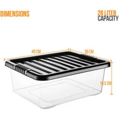 (1 Box, 28 Litre Underbed) Clear Plastic Storage Boxes With Black Lids Home