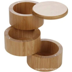 Acacia Wood Salt Storage Tank With Magnetic Rotating Lid, 6oz Capacity