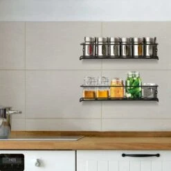 Relaxdays Spice Rack, 20 Glass Jars, Stainless Steel, H X W X D: 35 X 28 X 12 Cm, Silver/Natural
