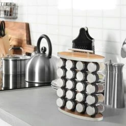 Relaxdays Spice Rack, 20 Glass Jars, Rotatable, Stainless Steel, H X D: Approx. 34 X 22 Cm, Silver