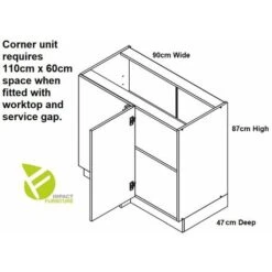 Kitchen Corner Unit Grey Gloss Base Straight Cabinet 110cm Cupboard Soft Close Lux