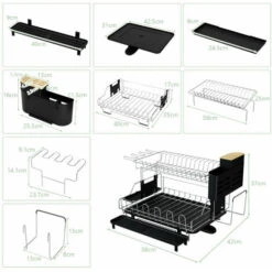 2-Tier Rust Resistant Dish Drying Rack Detachable Dish Drainer Rack