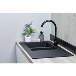 Liquida LP20BL 2.0 Bowl Composite Inset Reversible Black Kitchen Sink
