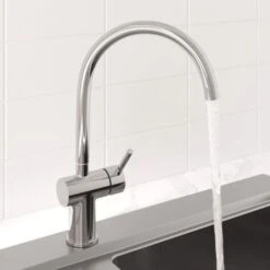 Modern Monobloc Kitchen Mixer Tap Single Lever Handle Curved Swivel Spout Chrome