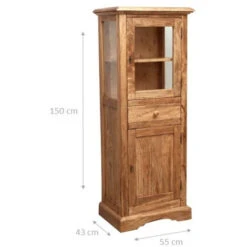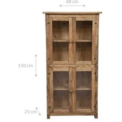 Country-style Solid Lime Wood, Antural Finish W68xDP25xH130 Cm Sized Display Case. Made In Italy