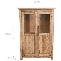 Country-style Solid Lime Wood, Natural Finish W68xDP25xH98 Cm Sized Display Cabinet. Made In Italy