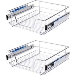 Livingandhome 30CM Set Of 2 Pull Out Wire Basket Kitchen Cabinet Larder Organizer Cupboard
