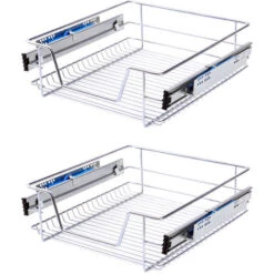 Livingandhome Set Of 2 Pull Out Wire Basket Kitchen Cabinet Larder Organizer Cupboard Drawer, 30CM