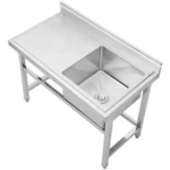 Livingandhome Commercial Double Kitchen Sink Standing Catering With Bowl Side Platform
