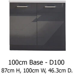 Kitchen Unit Base Cabinet Cupboard 100cm 1000 Grey High Gloss Soft Close 2 Door Luxe