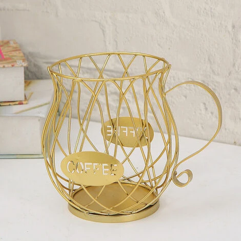 1pc Large Capacity Coffee Capsule Holder Storage Metal Fruit Snack Capsule Holder,Golden,12*15.5cm.It is also a very nice holder to hold other snacks and fruits on the counter and the bar cabinet.It can be placed anywhere you want,convenient and very useful.