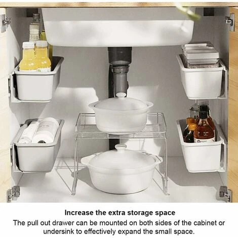 Extend the extra storage space: The pull out drawer can be mounted on both sides of the cabinet or undersink to effectively expand the small space. The corner storage design will provide more storage space.