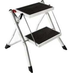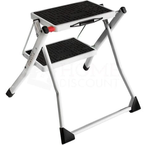 Home Discount offers this must-have item for every houseowner, 2 Step Folding Stool. Made from sturdy iron construction, you can be sure that this ladder won`t collapse under pressure, giving you complete confidence when using. Wide steps feature rubber mats to prevent slipping. The step stool folds down for easy storage and convenient transportation. Perfect for every kind of DIY job such as decorating and painting, as well as it will be a great help when trying to reach the hard-to-get places.
