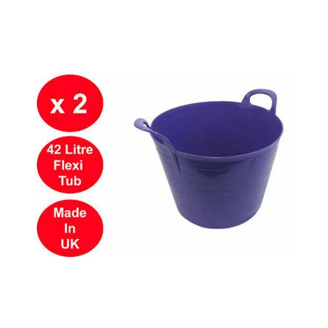 2 X 42 LITRE FLEXI TUB LARGE GARDEN CONTAINER FLEXIBLE STORAGE BUCKET PURPLE