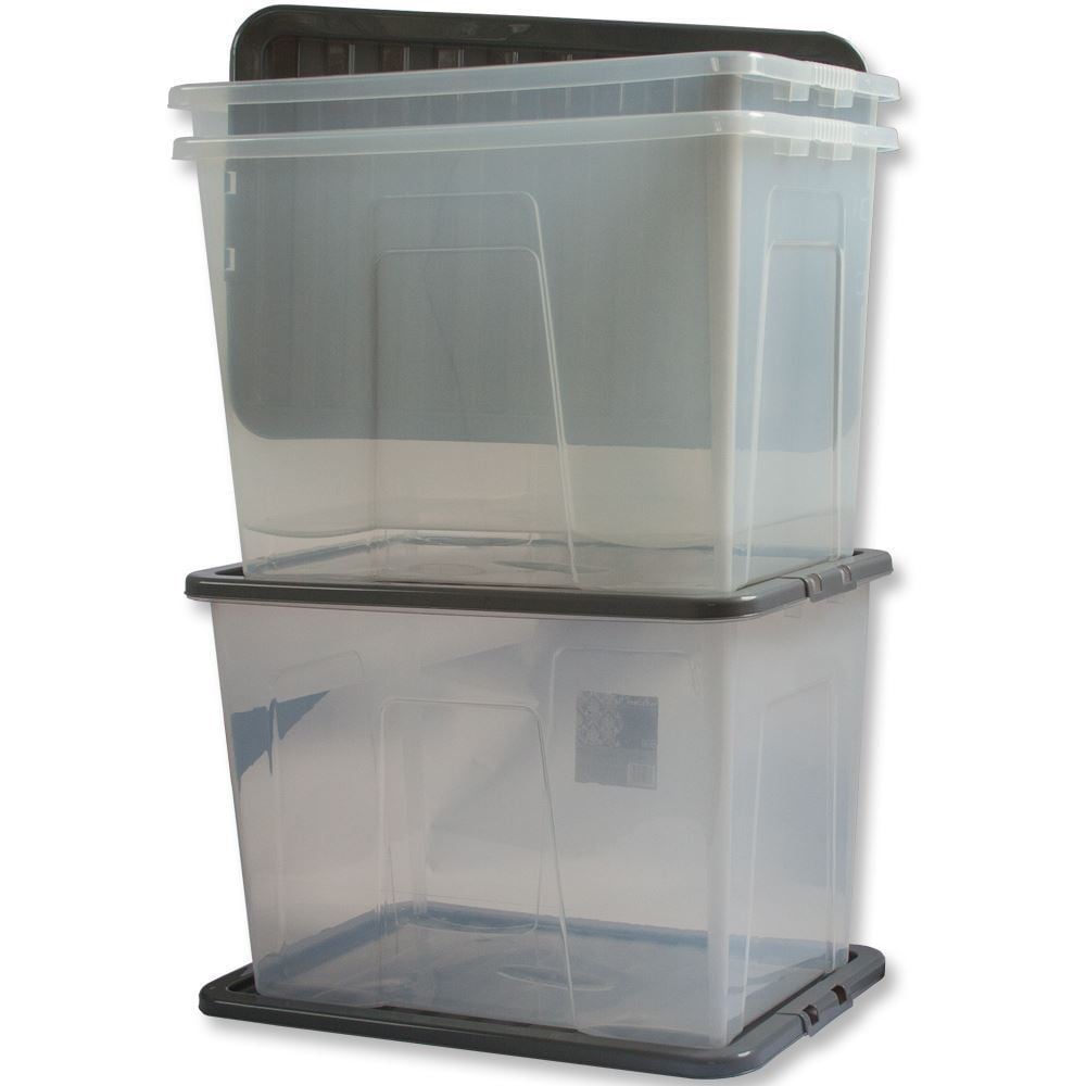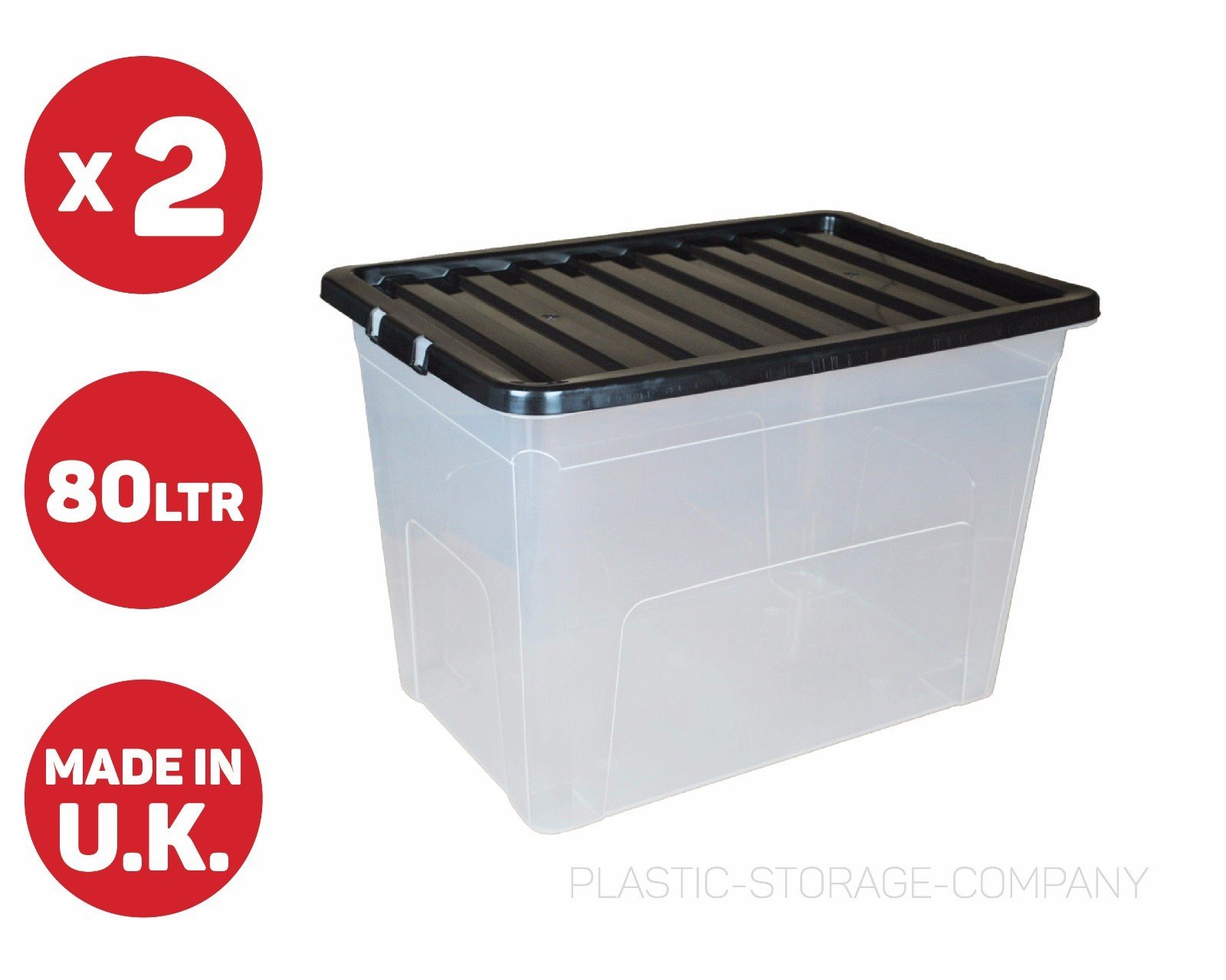 2 x 80 LITRE PLASTIC STORAGE BOX -X LARGE -STRONG CONTAINER -BLACK LID – CHEAP!
