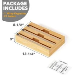 KITCHEN WRAPS STORAGE – Designed for plastic wrap, aluminum foil and wax paper; Not for rolls that are wider than 12″; The bamboo organizer for kitchen storage organization is 3″ High; MEASURE YOUR DRAWER HEIGHT FIRST