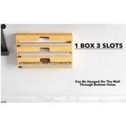 1 PIECE BOX WITH 3 SLOTS – This wrap organizer offers you different ways of organizing plastic wraps; You can put it in drawer or hang it on the wall; Bigger opening in the middle makes it easier to find the roll start