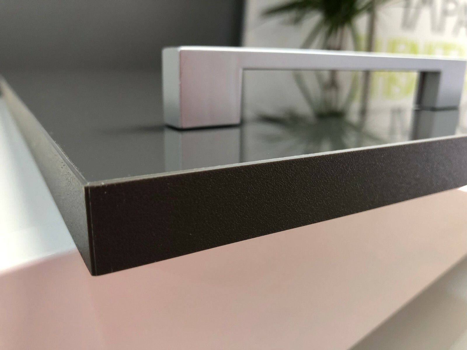 Plinths in Grey High Gloss finish for uniform look.