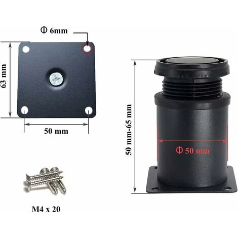 Package content: 4 x adjustable feet; 16 x mounting screws