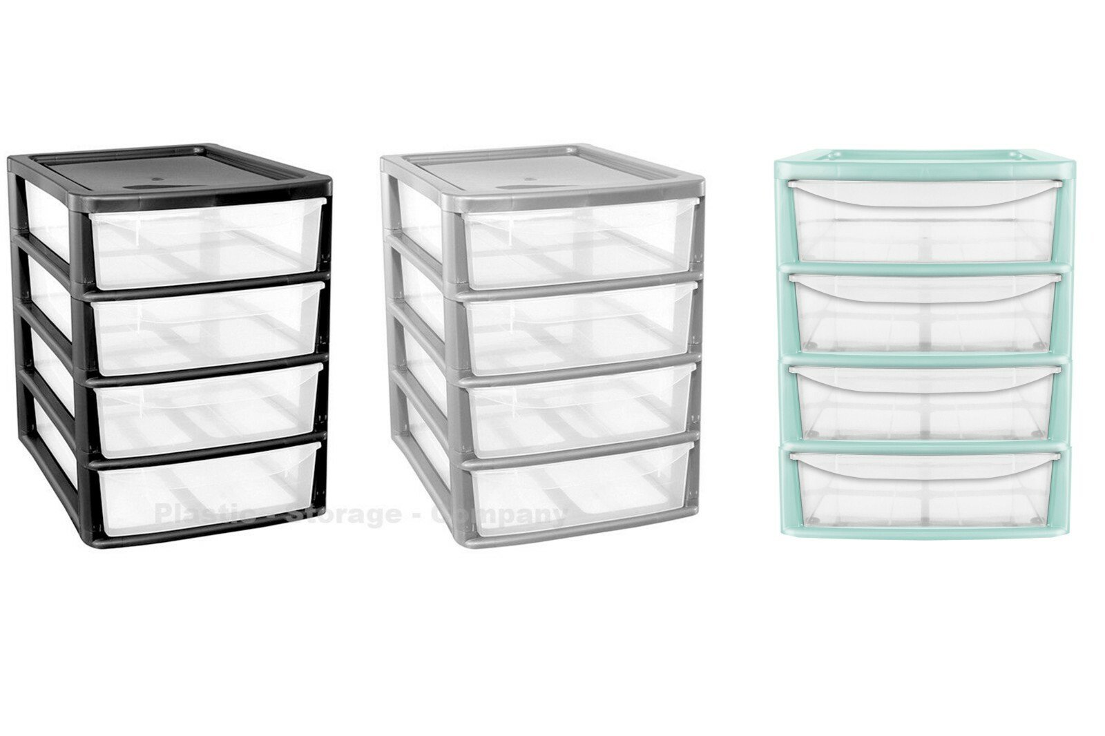 4 DRAWER PLASTIC STORAGE DRAWER A4 SLIM-LINE HOME OFFICE BEDROOM BATHROOM DESK