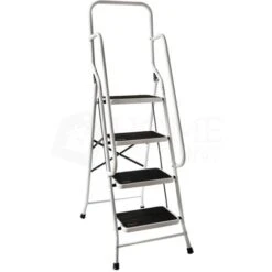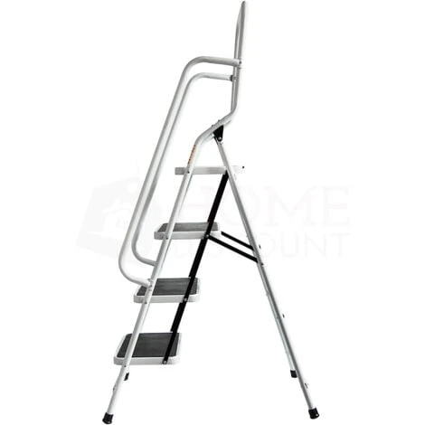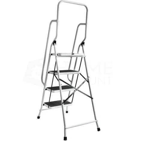 Home Discount offers this must-have item for every houseowner, 4 Step Ladder with Handrail. Made from sturdy tubular steel construction, you can be sure that this ladder won`t collapse under pressure, giving you complete confidence when using. Ladder ensures safety on your every step – wide steps feature rubber mats to prevent slipping, as well as there are handrails on the sides and the top. The step ladder folds down for easy storage and convenient transportation. Perfect for every kind of DIY job such as decorating and painting, as well as it will be a great help when trying to reach the hard-to-get places.
