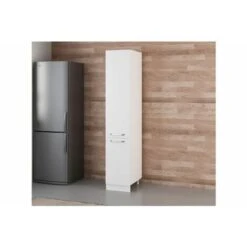 The cabinet is made of high-quality melamine faced chipboard finished in white colour. It features a prime quality plastic legs.