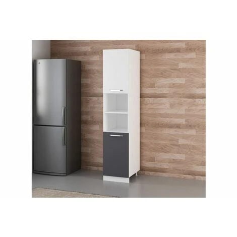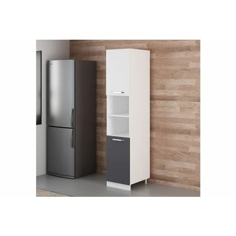 The cabinet is made of high-quality melamine faced chipboard finished in white and anthracite colour. It features a prime quality plastic legs.