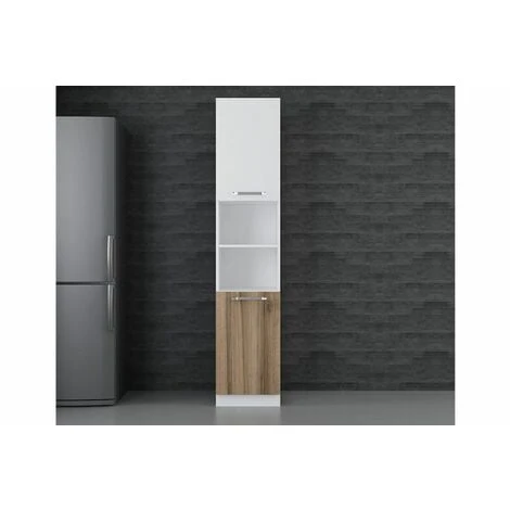 The cabinet is made of high-quality melamine faced chipboard finished in white and walnut colour. It features a prime quality plastic legs.