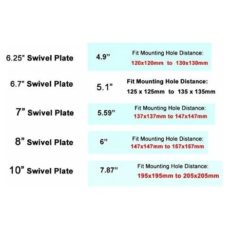 MOUNTING HOLE DISTANCE–4.9 (Minmum 120x120mm; Maximum 130x130mm), Hole Size: 7*21mm(Mounting hardware not included).