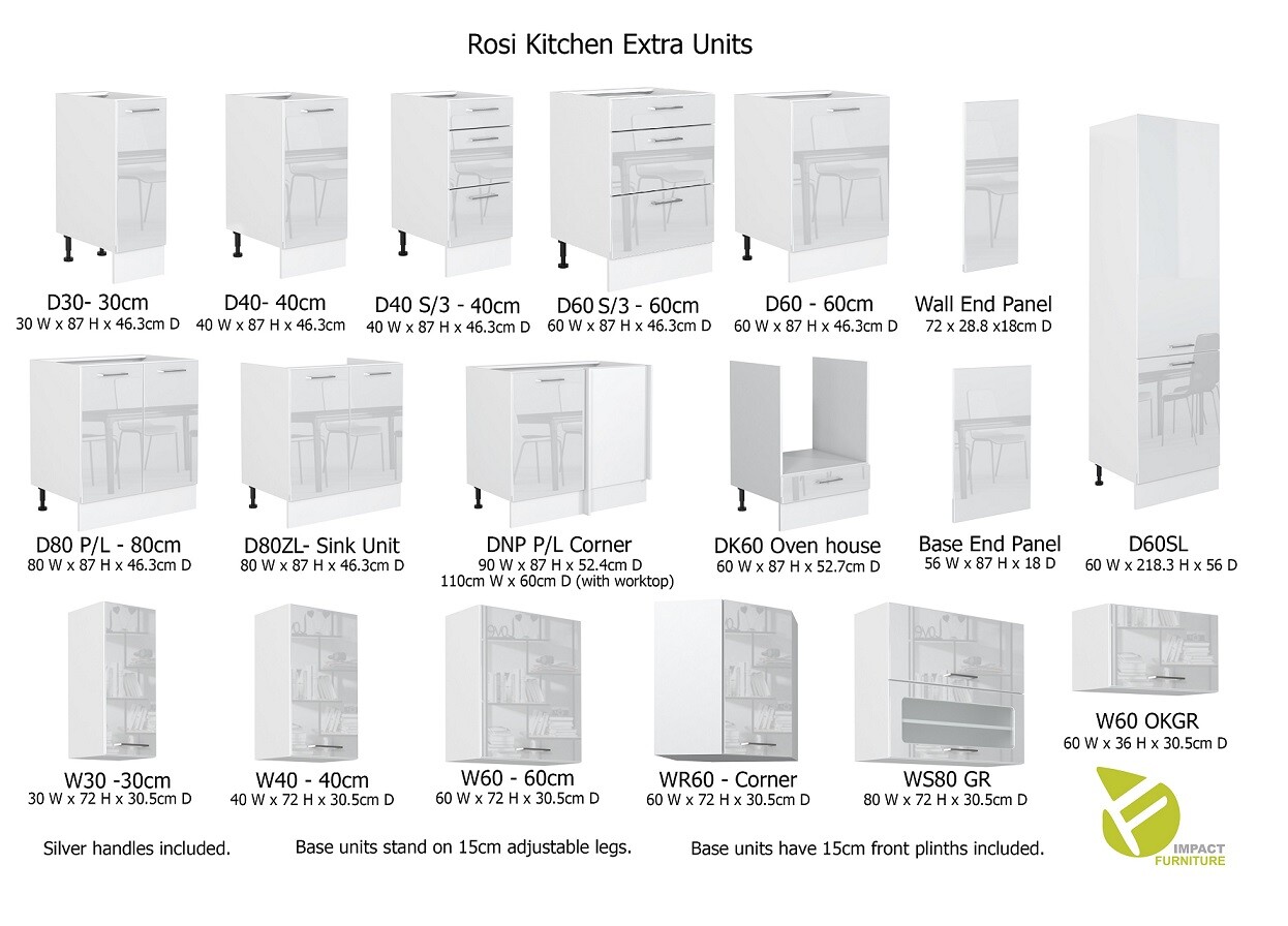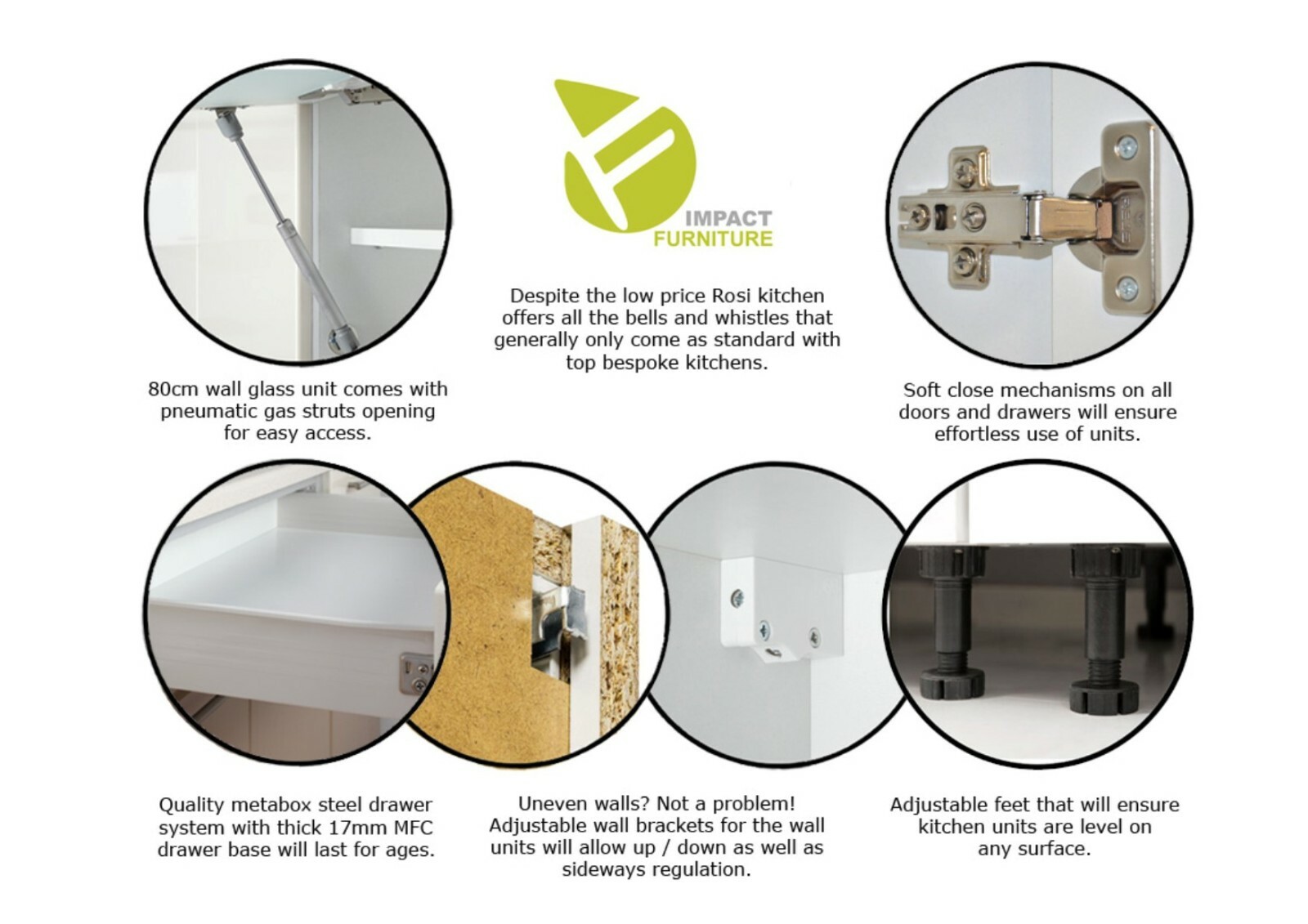 White Gloss Kitchen Unit 600mm Extractor Cabinet Cupboard Wall Soft Close Rosi