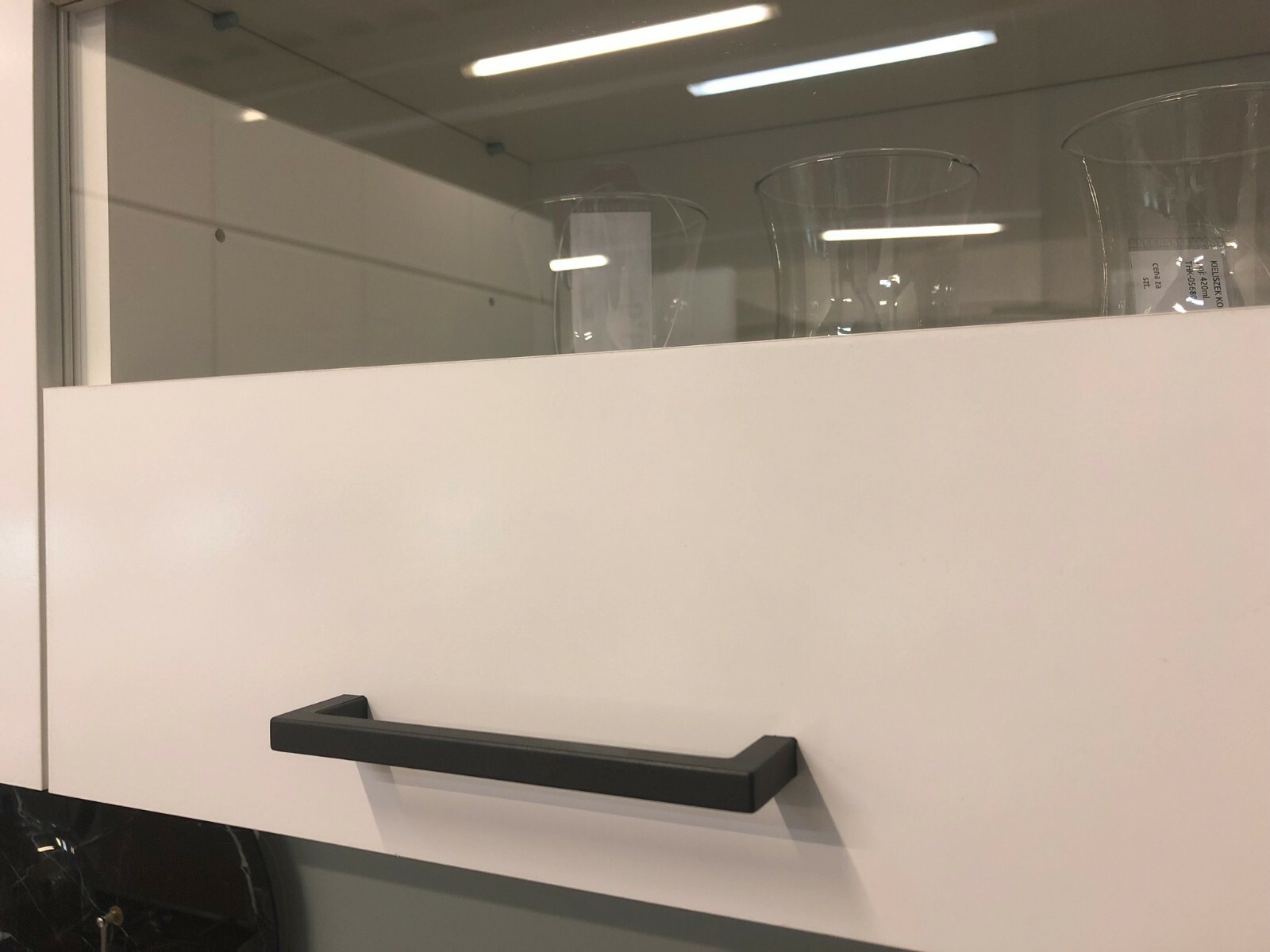 JUNONA LINE – WALL CUPBOARD 80CM WIDE WITH GLAZED DISPLAY DOOR & GLASS SHELF & LED LIGHT