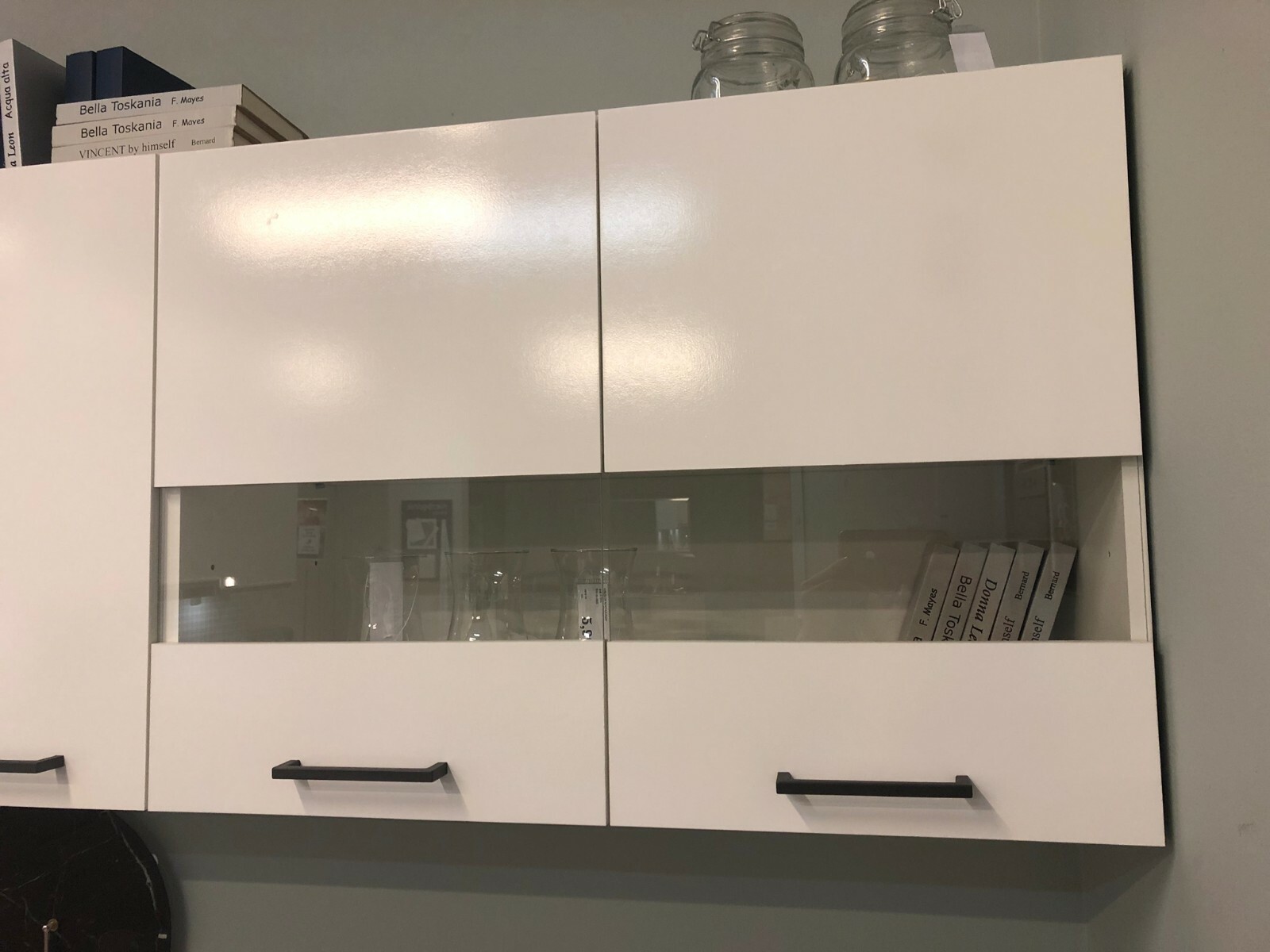 800mm Kitchen Wall Unit White Low Gloss Cabinet Glass Display LED Light Junona