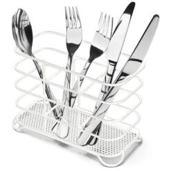 This wire cutlery holder is finished in a beautiful high gloss painted steel. Ideal for storing or draining cutlery