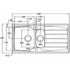 Sink dimensions (mm): W980 x D500