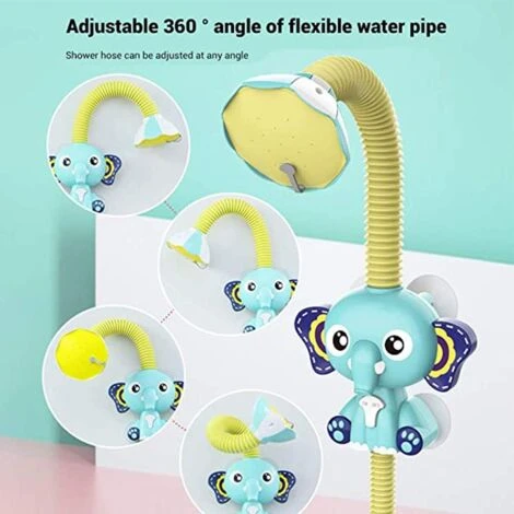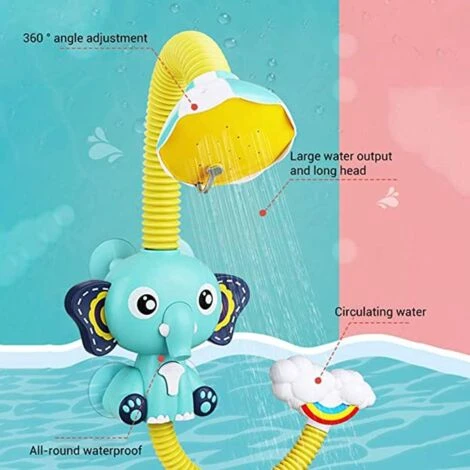 【Electric Shower Bathtub Toys】 : Cute elephant shape, realistic lotus sprinkler, cloud nozzle design toy makes children’s bathing time more interesting. Just tap the baby elephant’s belly gently, and water keeps spraying.^【360 ° Rotatable Shower】: 360° angle adjustment, two water outlet methods, large water output. electric circulation, circular water output, all-round waterproof. The battery compartment is sealed and waterproof. The back suction cup can be adsorbed on flat and curved surfaces.^【Interactive Bath Toys】 : This cute elephant design would surely attract your kid’s attention and make the bath time more fun and interesting. It is also perfect as swimming pool toys or paddling pool toys. Great gift for little kids to add more fun to bathing time.^【IMPORTANT:Batteries Assembly】 :4X1.5 V AAA Required (not included). VERY IMPORTANT! Take out the battery insert from battery case and put 4X1.5V AAA to make it work. ^【MATERIAL】 : Made of durable plastic materials and cute bath toys. Best water spray bath toy ever! Excellent for baby shower and party favors, great gift for Birthday.