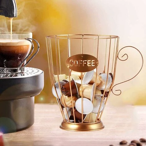[Multifunction] coffee pod holder is also a very organizer to hold other snacks or fruits on the bar counter and tea table, which could be helpful for Anyone who wants every storage container to be assorted. [Space-saving storage box] – The bottom of the rack is flat and smooth, which can protect the surface of the counter or cabinet. It can hold many coffee pods of different sizes and takes up less space. [Premium Material] Each coffee cup pod holder is made of premium iron. Allowing the cup holder to be placed anywhere without worrying about water or vapor affecting it. [Special cup-shaped design] – The top opening of the cup holder coffee tumbler makes it easy to choose your favorite coffee of the day, while saving you time getting your coffee pods right. [Great Gift]Unique iron design sample, with a base Made of sturdy iron, you can easily choose the coffee pod you want without worrying about the basket falling from the pod holder. you can put it in various scenes such as kitchen, school, office and other stores. It is a perfect gift for others.