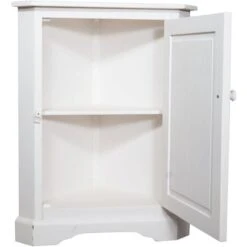 W50xDP50xH92 cm sized entirely solid lime wood made corner cupboard. Meticulously finished thanks to Made in Italy craftsmanship and treated in detail, it has two shelves closed with door. Its simplicity makes it an ideal complement to any Country-style living.