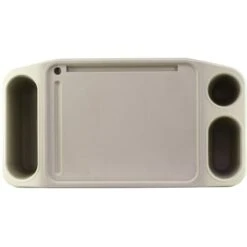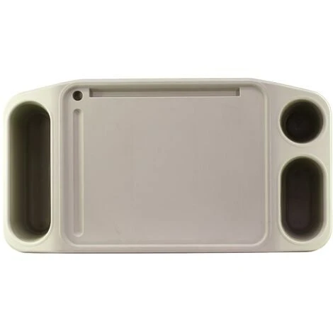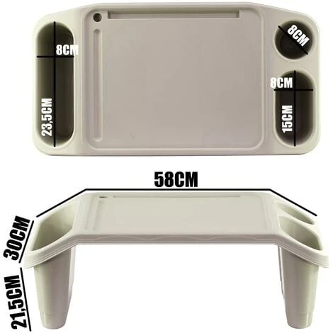 This bed tray measures approx. 58 cm x 30 cm x 21.5 cm (L x W x H). It perfectly fits a laptop, or you can stand your tablet and phone in the specially designed slot. This tray features three extra compartments, one round for your drink and two larger for books, personal items, headphones, pens, notes, and anything needed to have in reach of hand. This durable bed table is available in blue pastel colour.
