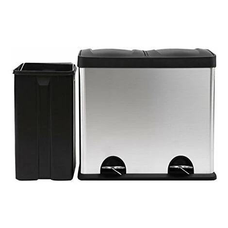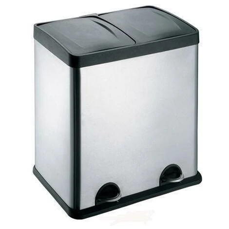 - Evre Large Stainless Steel Recycling Bin with 48 Litre Total Capacity Two Separate Compartments (24L+24L)