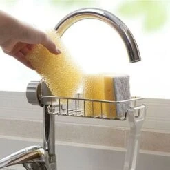 3.MULTI-PURPOSE: A convenient sink drainer, can store sponge, scrubber, scouring pad, soap, dish towel, dish-washing liquid, etc. It can also be used to put glasses razors or towels in the bathroom.This kitchen faucet rack comes with a bonus sponge. Sincerely, thanks for your select and trust.^