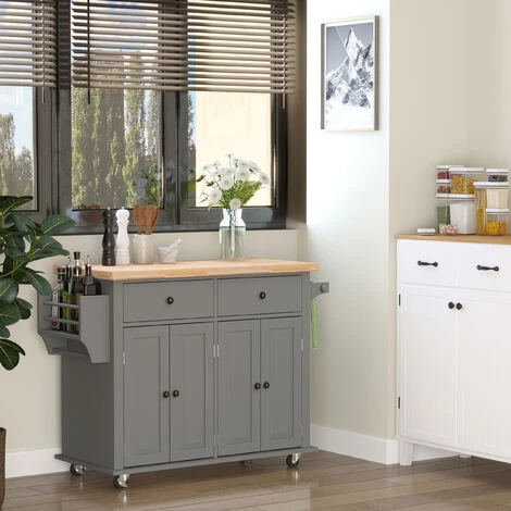 – 4 smooth-rolling kitchen cart casters with 2 locking brakes provide mobility and stability