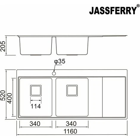 Easy to CleanJASSFERRY kitchen sinks are made of high-quality SUS304 stainless steel with a matt finish. Durable and corrosion-resistant. It can be cleaned with a soft cloth or 3M sponge scouring pad. | 2 Bowls DesignThis 2 bowls kitchen sink is convenient for you to wash fruits and vegetables separately. It can also provide space to dry dishes. | Right DrainboardThis sink is assembled with the drainboard to the right. A large draining area will come in very handy not only when placing dishes to dry but also as an extra place for cutting vegetables or fruits | Deep BowlThis sinks features deep bowls, which prevent splashing and fit your biggest pots and stacks of dishes |
