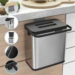 1 HOW TO USE THE KITCHEN BIN:The kitchen bin can be hung on the cabinet, pasted on the door, or placed on the table top (the lid can be buckled next to the Bin for easy use). You don’t need to bend over to make cleaning up the garbage easier. Such a thoughtful design is super suitable for use in your home.