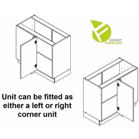 1 x 110cm Corner Base Unit (DNP) with shelf, blanking plate and 1 door 90cm wide x 87cm high x 47cm deep.