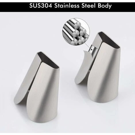 Product Description Package Contents: 2 * Towel Hooks 1. STAINLESS STEEL: The tea towel hangers are made of high quality SUS 304 stainless steel, resistant to corrosion and rust. The all-metal structure ensures durability and hardness, suitable for humid environments such as showers, kitchens and bathrooms. Bathroom. 2. SELF-ADHESIVE: Quick and easy wall mounting, very sticky and waterproof, no drilling, no damage to the wall. Please wait 12 hours after installation before using the towel rail. 3.EFFICIENT & CONVENIENT: This V-shaped metal holder can hold the towel. Insert the towel into the V-shaped space from above to hang, and pull down when you need a towel. The edge is smooth to keep your towel from snagging. 4.DECORATION: Door hooks have hand-brushed stainless steel finishes that resist daily scratches, corrosion and fading. The glossy look is perfect for your modern home. 5. SPACE SAVING: Kitchen Towel Rack Overall Size: 56 x 52 x 30mm (2.2 x 2 x 1.2inch). Due to its small size, it is suitable for kitchens, bathrooms, offices, walls, closet doors or anywhere you need towels.