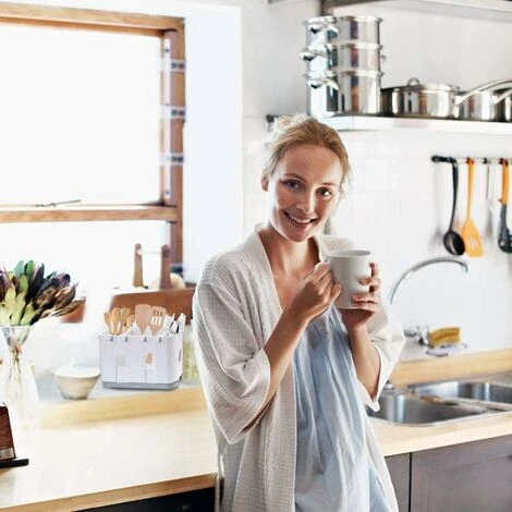 Cutlery Dish Rack: With small drainage holes and a water retention tray, the plastic dish rack can keep your utensils and sink clean and sanitary. This cutlery drying rack also makes your kitchen worktop tidy.