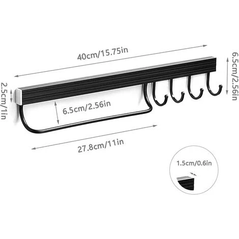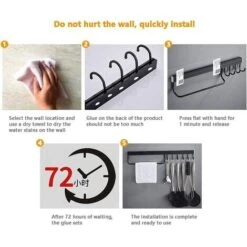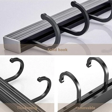 Material: The kitchen utensil hook is made of high quality aluminum alloy, which is not only lightweight, but also has high bearing capacity, non-toxic and tasteless, not easy to corrode and rust, and not easy to deform.