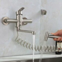 Wall mount for full kitchen wall does not ;any bathroom or kitchen. Flexibility and freedom of movement – A 360° swivel spout and an additional spray gun for easy cleaning give you more flexibility and are also suitable for double sinks.