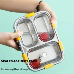 5. [Three Compartment Design] The adult lunch box is divided into three compartments, and main course, side dishes or snacks are placed separately to keep the food clean and odor-free. It can be maintained