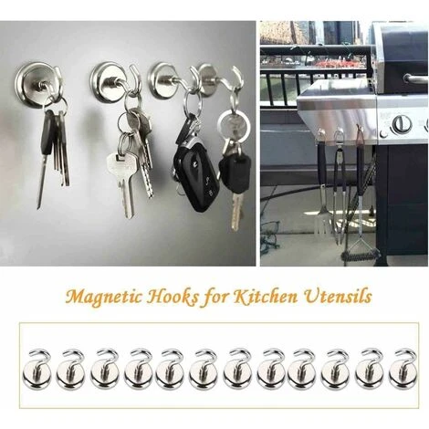 Magnetic hook & hook high quality help; made of A3 steel and assembled nodymium-iron-boron, with these hooks to store keys, papers, kitchen utensils, tools, etc., you can easily find them.